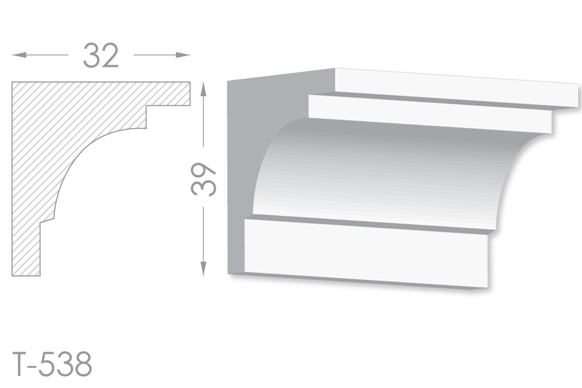 Карниз з гладким профілем, молдинг стельовий з гіпсу т-538